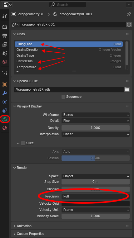 Note that blender treatment of VDB files is not optimized and may be too slow for full meshes. We advise to crop the domain of interest with the activateGrids script.
